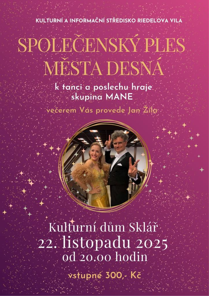 Na společenském plese Města Desná k tanci a poslechu zahraje MANA a tančit bude Patrik Hartl s partnerkou.